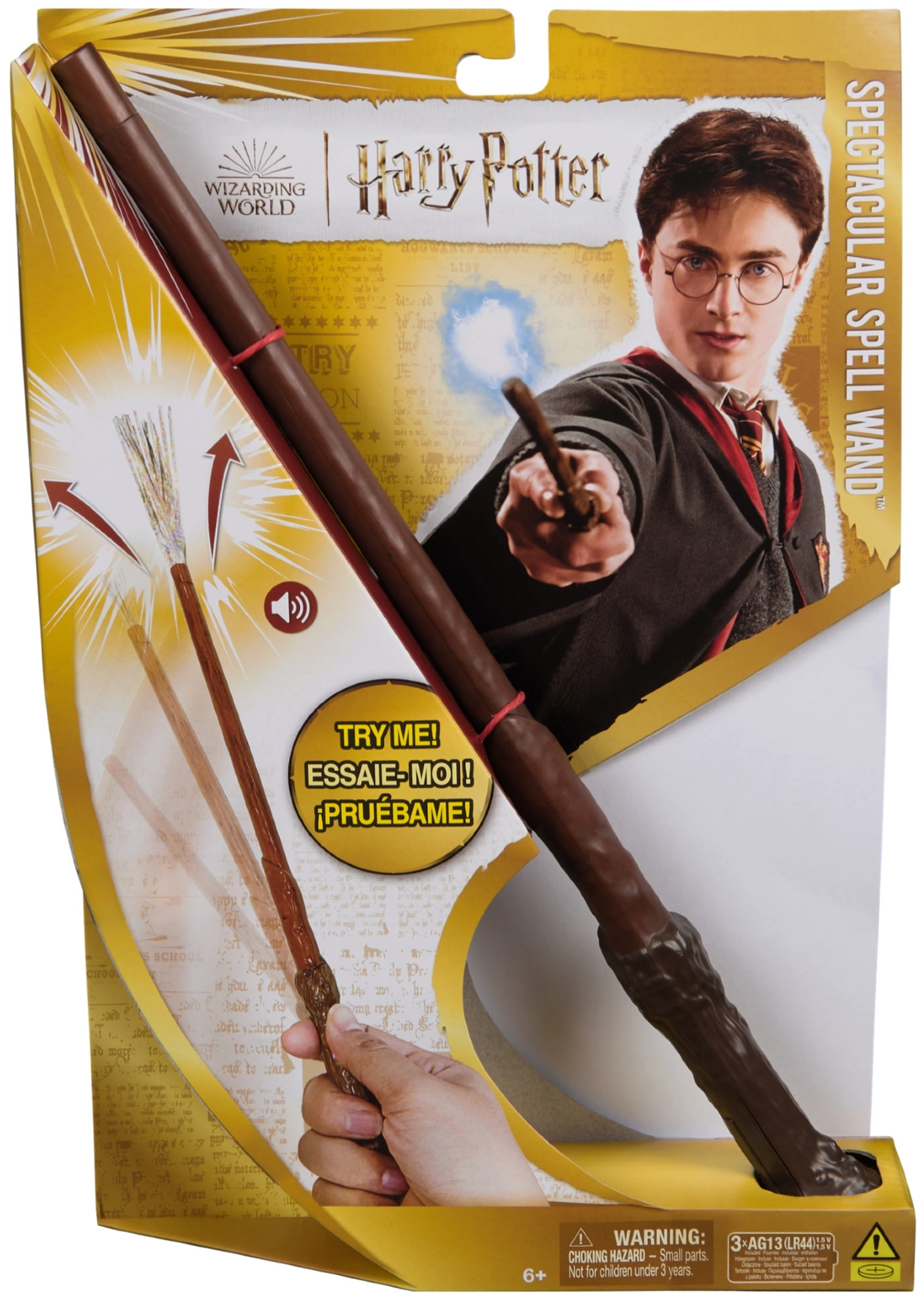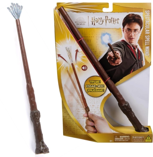 Lasciati avvolgere dall’atmosfera magica della saga cinematografica di HARRY POTTER e prova la bacchetta realistica Spectacular Spell. La bacchetta è attivata dal movimento della mano, conferendo a ogni incantesimo il giusto effetto. Dopo l’esecuzione, sulla punta della bacchetta compaiono striscioline argentate che imitano la luce magica, e sentirai un breve suono.