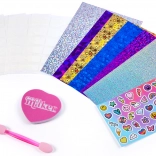 - 6 motivi per unghie, 5 mascherine adesive, foglio di adesivi, spatolina, limetta a forma di cuore, istruzioni