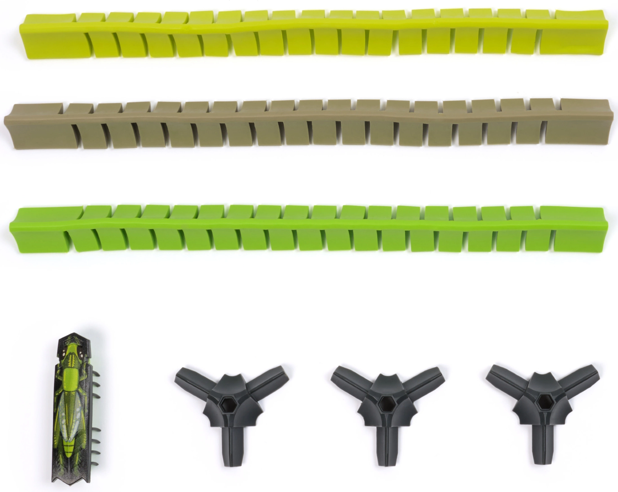 I pezzi di collegamento consentono un aggancio rapido e una guida sicura del coleottero lungo il tracciato. I segmenti sono elastici e flessibili, così puoi costruire ovali, curve e labirinti. Il set può essere ampliato con altre piste e coleotteri HEXBUG per ancora più azione.