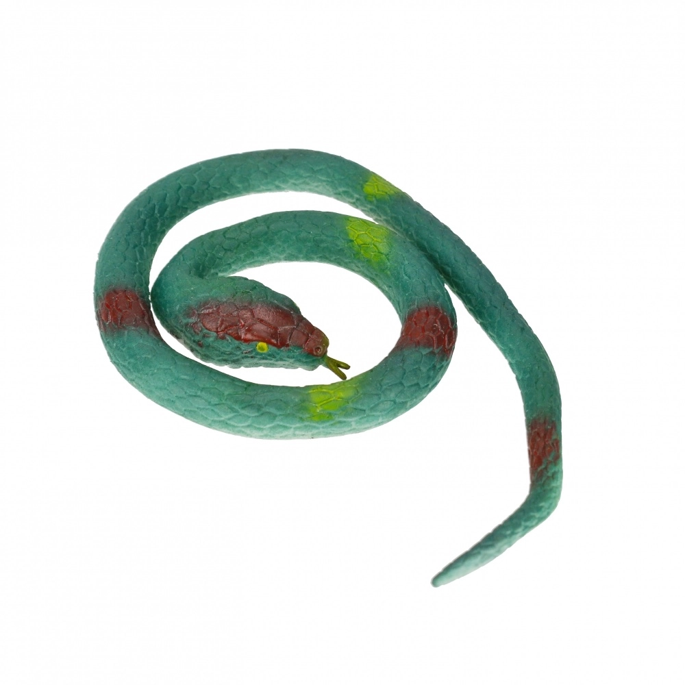 Questo serpente di gomma appare sorprendentemente realistico grazie alla superficie dettagliata con scaglie, agli occhi evidenti e alla testa sagomata. Il materiale flessibile consente di piegarlo e sistemarlo facilmente: il serpente può essere arrotolato, allungato e posizionato in pose naturali.