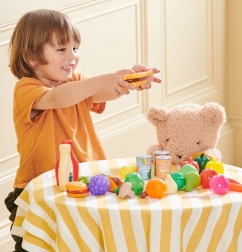 Grazie ai pezzi leggeri e resistenti, il set è adatto alle piccole mani dei bambini. È perfetto per arricchire la cucina o il negozietto dei più piccoli e favorisce in modo naturale comunicazione, immaginazione e cooperazione durante il gioco.