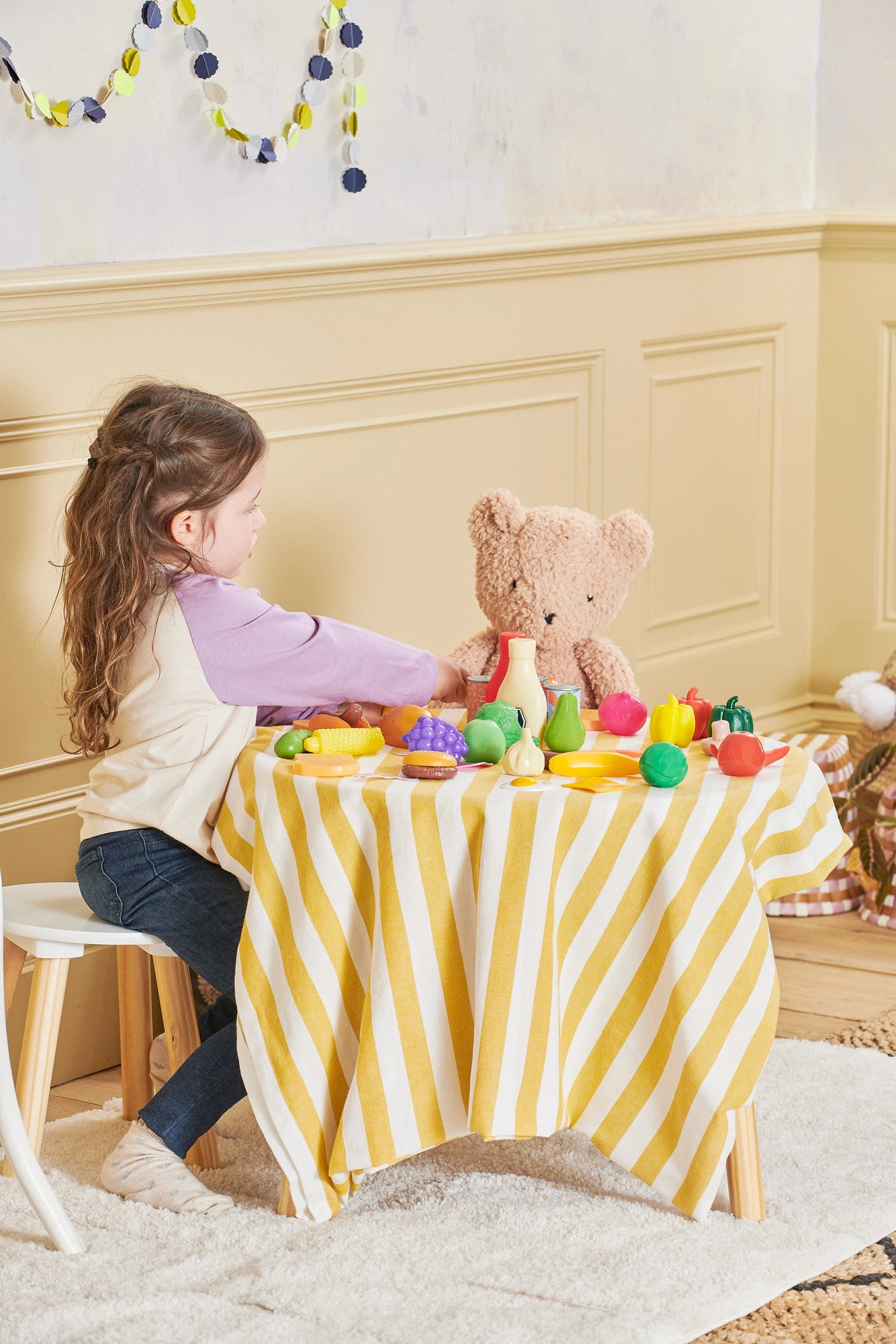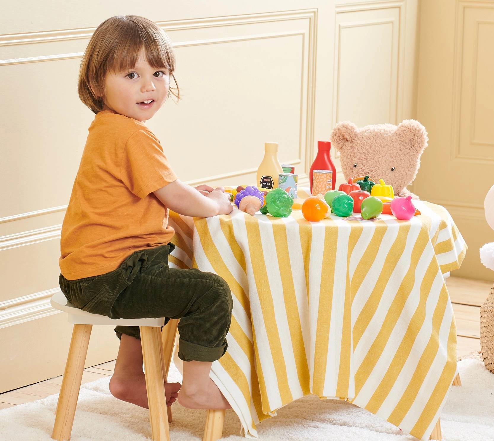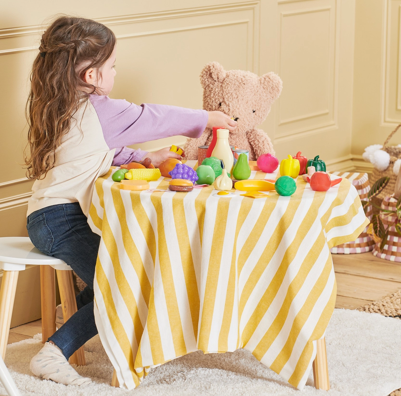 Da frutta e verdura fresche a conserve e golosità: i bambini possono facilmente preparare colazione, pranzo e cena ed esercitarsi a fare la spesa e servire.