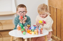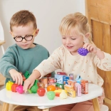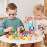 Il gioco del cucinare e fare la spesa sviluppa creatività, abilità sociali e motricità fine. I diversi colori e forme invitano a classificare e contare, sostenendo le competenze prescolari.