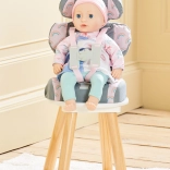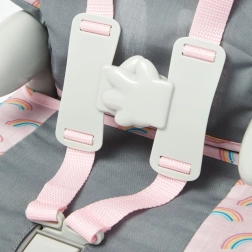 La finitura grigio‑rosa con motivo arcobaleno è non solo adorabile, ma anche pratica: i materiali sono resistenti e piacevoli al tatto. Il seggiolino è adatto per bambole fino a 46 cm ed è perfetto per giocare in casa, in viaggio e durante l'allattamento delle bambole.