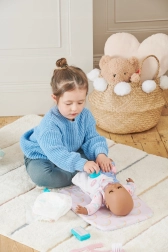 Questo set cambio per bambole è ideale per i piccoli accuditori. I bambini possono provare l’intero rituale di cura – dal cambio al pettinare fino al “trattamento” del bebè. Accessori realistici e tappetino morbido assicurano un gioco confortevole e creativo che sviluppa la motricità fine e l’empatia.