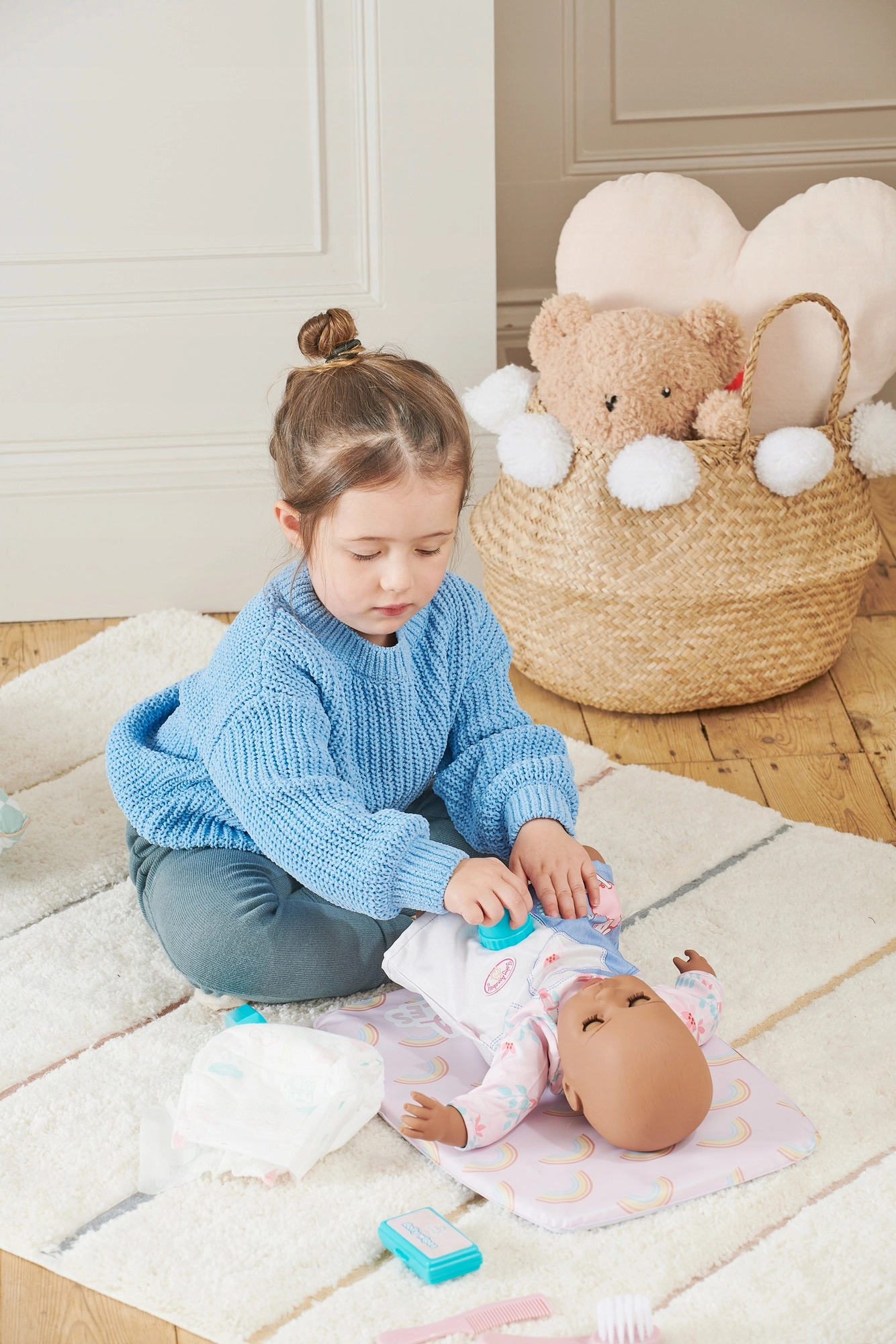 Tappetino, pannolino e accessori per la cura sono compatti e ordinati – perfetti a casa e in viaggio. Adatti a bambole fino a 46 cm.