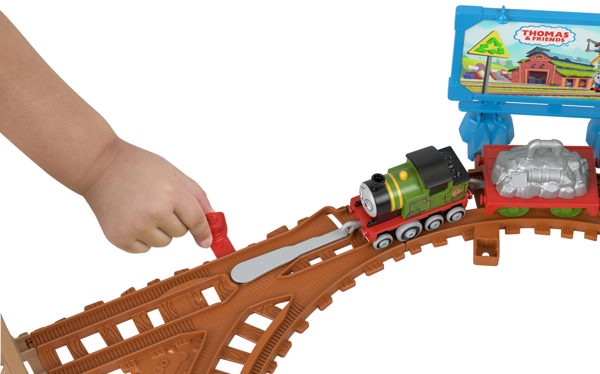 Parti per un’avventura sull’isola di Sodor con l’iconica locomotiva Whiff, impegnata nel riciclo. I bambini si divertiranno per ore con la locomotiva, due vagoncini e il lungo tracciato con incrocio e scambio. Il cambio manuale dei binari favorisce la motricità fine e stimola l’immaginazione.