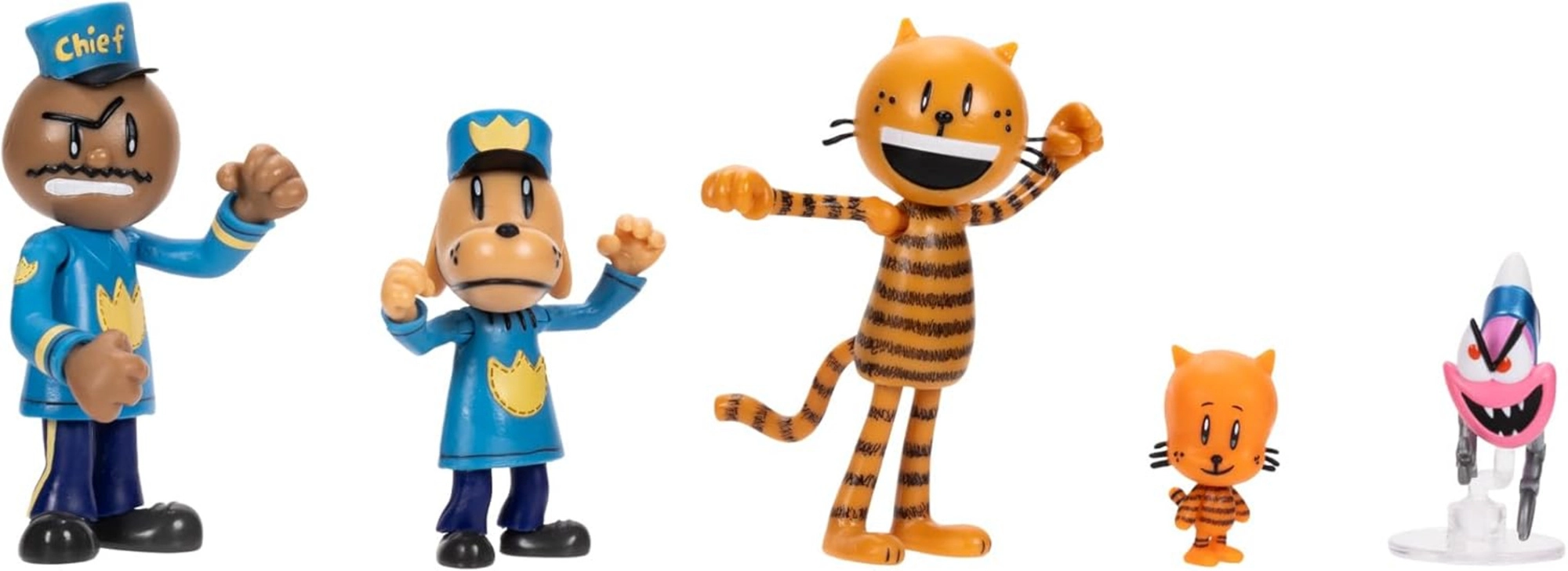 La confezione include cinque personaggi iconici: Chief, Dog Man, Petey, Lil’ Petey e Flippy. Grazie alla combinazione di eroi e antagonista, i bambini possono creare facilmente scene avvincenti e sviluppare fantasia e storytelling.