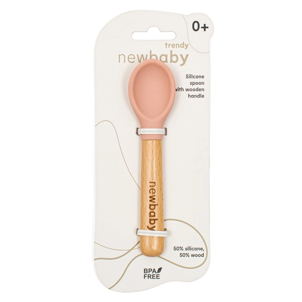 Scopri la fusione tra design moderno e funzionalità. Il cucchiaino in silicone per bambini NEW BABY di colore rosa è realizzato in silicone di altissima qualità senza BPA e completato da un manico in legno con elegante incisione. Grazie alla superficie morbida è delicato sulle gengive sensibili e confortevole per l’uso quotidiano.