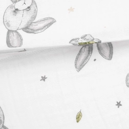 La federa NEW BABY, elegante e funzionale, in morbida mussola di cotone garantisce al bebè un sonno tranquillo e confortevole. Il materiale è eccezionalmente morbido, arioso e piacevole al tatto, ideale anche per i più piccoli. Il design moderno con il dolce motivo Bunny si abbina perfettamente a qualsiasi cameretta.