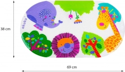 Consigli d’uso: Riempite la vasca d’acqua, posizionate il tappetino e premetelo uniformemente. Dopo ogni bagnetto lavate con un delicato sapone per bambini, risciacquate e lasciate asciugare. Tenete sempre il bambino sotto la supervisione di un adulto.