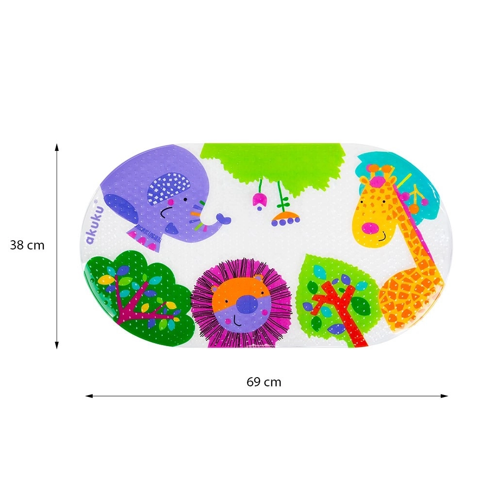 Bagnetto sicuro e divertente per bambini e genitori. Il tappetino antiscivolo Akuku con ventose garantisce stabilità in vasca e doccia, è realizzato in PVC di alta qualità privo di ftalati e, grazie alla stampa colorata, rende più piacevole l’igiene quotidiana. Maggiore sicurezza, aderenza affidabile e manutenzione facile in uno.