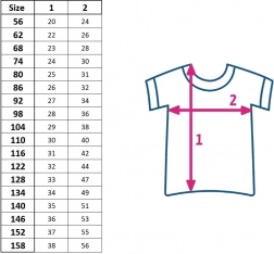 Si consiglia di seguire la tabella delle misure (vedi ultima foto) per scegliere la taglia corretta. La maglietta in taglia circa 140 è adatta a bambini di 9–10 anni.
