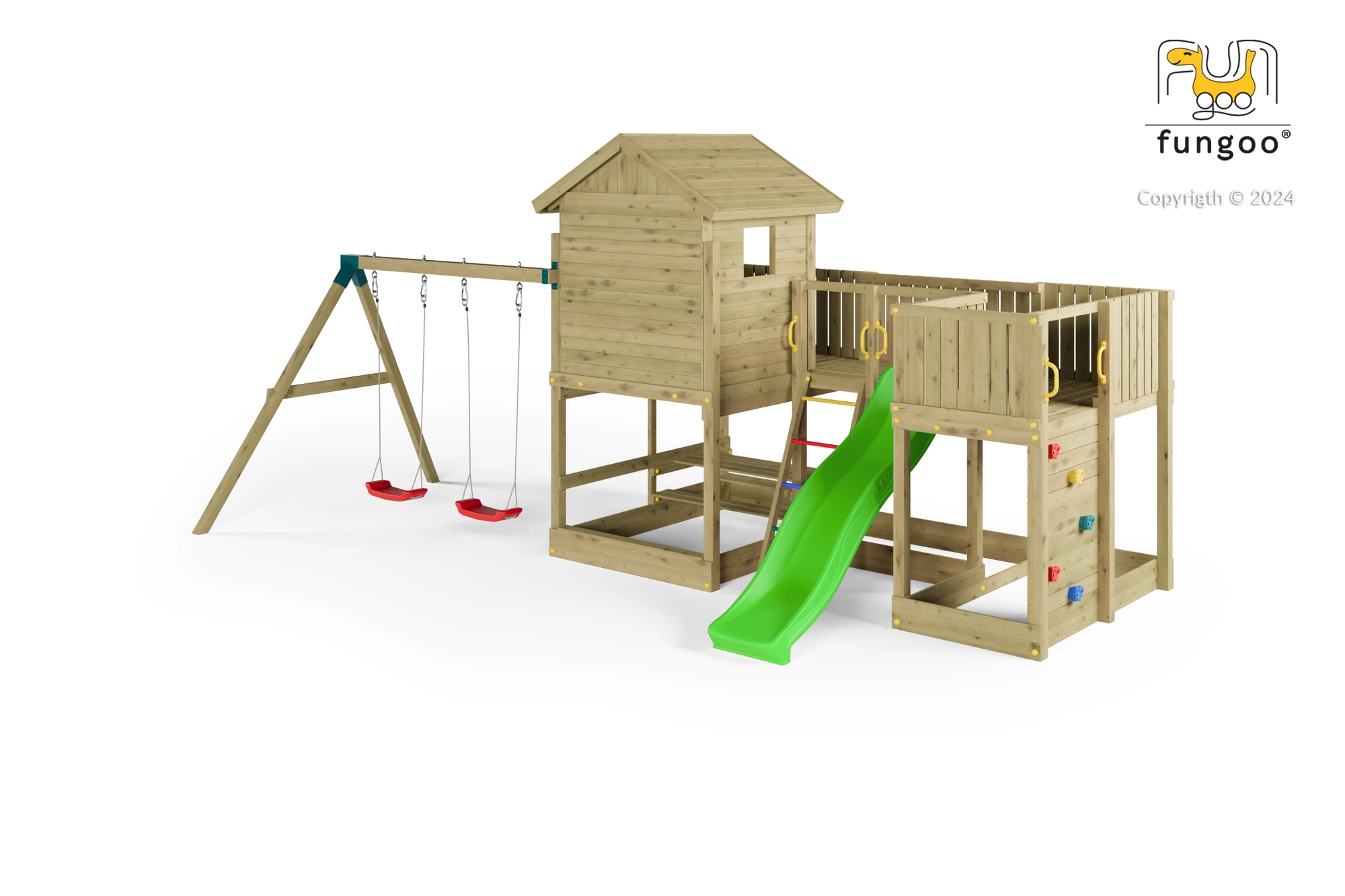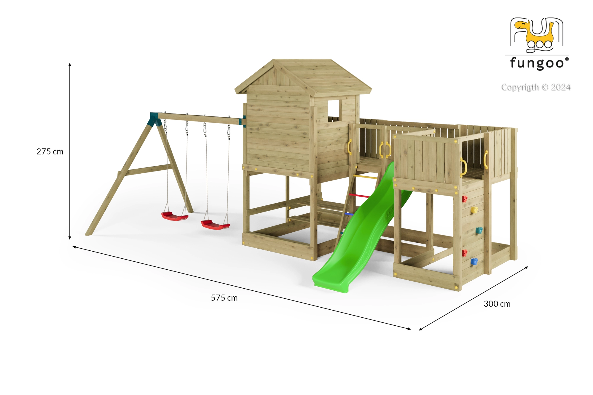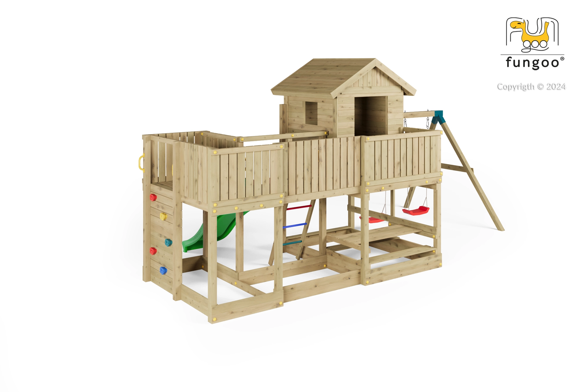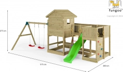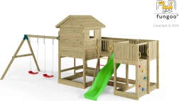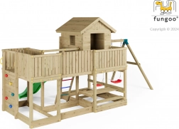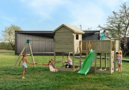 Fungoo Longstepper è un parco giochi da giardino completo, realizzato in legno di qualità impregnato a pressione, progettato per una lunga durata e per il divertimento quotidiano. Grazie alla disposizione studiata degli elementi, sviluppa motricità, equilibrio e immaginazione dei bambini. La sicurezza è aumentata da maniglie, corrimano e robuste giunzioni metalliche.