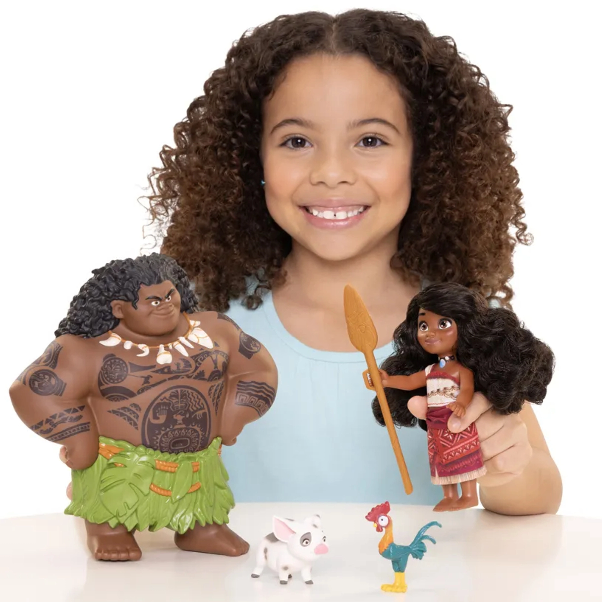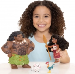 - Set completo di personaggi: Vaiana, Maui, il maialino Pua e il gallo Heihei.