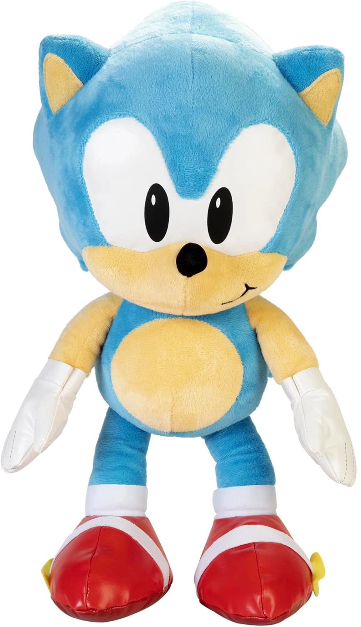 Il grande peluche SONIC THE HEDGEHOG alto 46 cm farà felici fan piccoli e grandi. Ha le iconiche scarpe rosse, guanti bianchi ed è realizzato in peluche extra morbido per il massimo comfort durante gli abbracci. Perfetto come regalo e come decorazione da collezione per la cameretta.