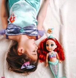 La bambola ARIEL My Singing Friend è pensata per i bambini che amano il canto, le avventure acquatiche e le acconciature creative. Premendo il pulsante si illumina la coda traslucida, si ascolta un estratto dell’iconica canzone “Part of Your World” e Ariel parla in diverse lingue. Grazie all’effetto resistente all’acqua, i bambini potranno divertirsi magicamente anche nella vasca da bagno.