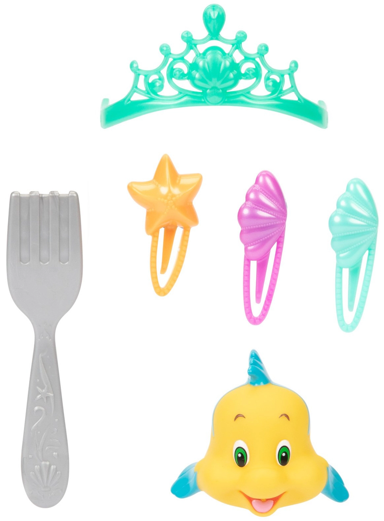 - tiara, 3 mollettine per capelli, pettine “dinglehopper”, mini-figura Flounder