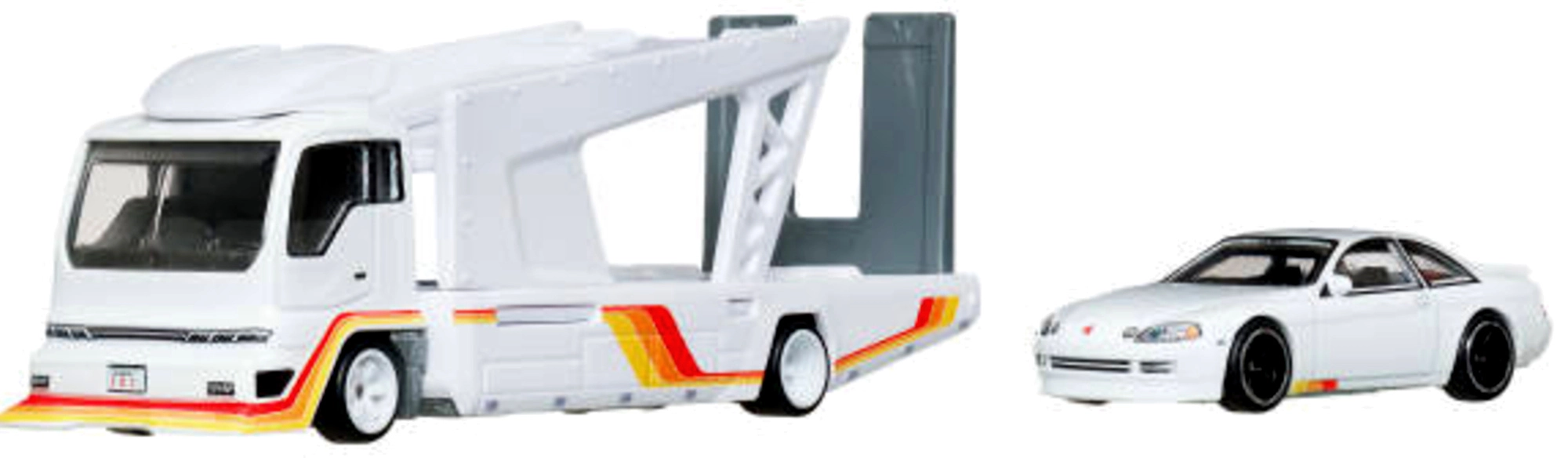 Scopri il set premium HOT WHEELS della collezione Premium Team Transport, che unisce eleganza e spirito da gara. Il modello Toyota Soarer in bianco e il raffinato transporter Kousoku Hauler #79 formano un duo perfetto per la tua vetrina e per il gioco creativo.