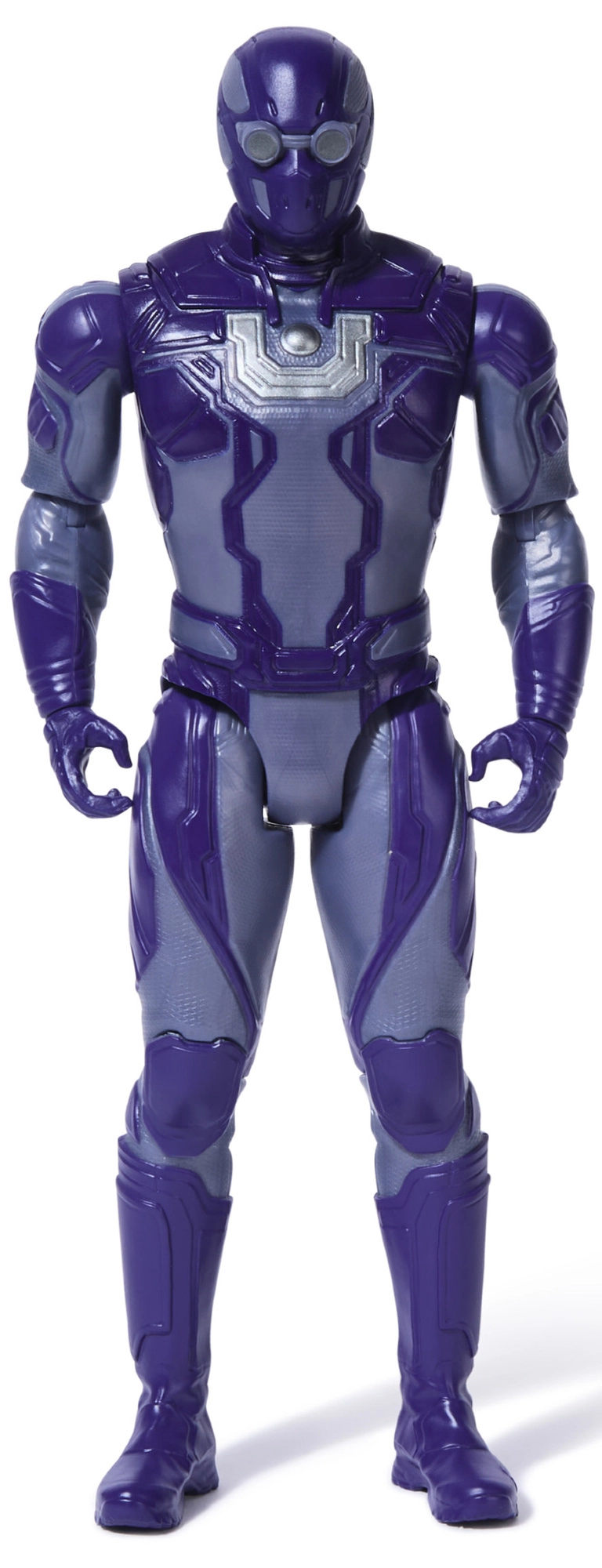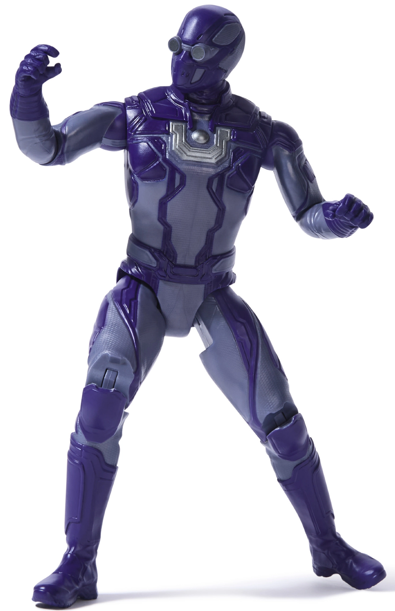 L’armatura viola con dettagli precisi e l’iconico simbolo sul petto richiama fedelmente il personaggio dell’universo DC.