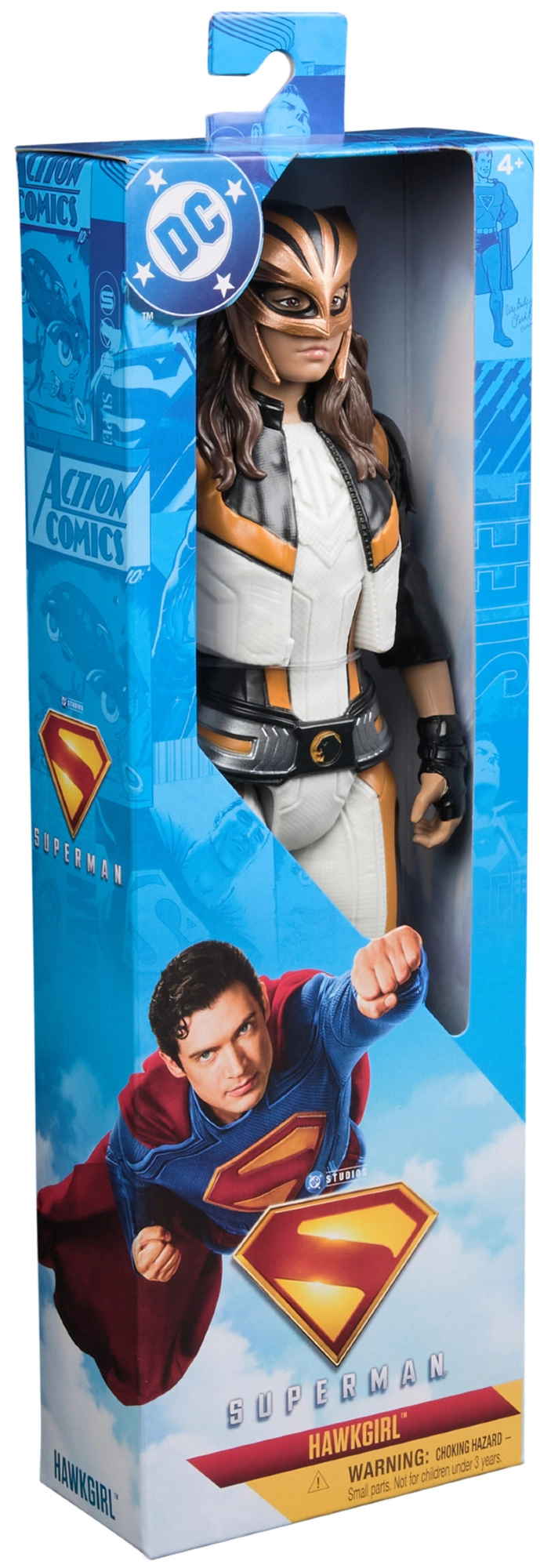 La figure di HAWKGIRL in tuta bianco-nera con accenti dorati riproduce fedelmente la versione a fumetti e animata della guerriera di Thanagar. Grazie a braccia, gambe e testa articolate imposterai facilmente pose d’azione per il combattimento e il volo con ali marroni separate.