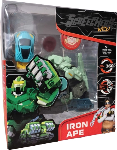 Lanciati nell’azione con il set Screechers Wild! – la figura trasformabile IRON APE, che in un attimo si trasforma da scimmia in una veloce auto verde. Grazie agli elementi mobili, al design appariscente e alla moneta energetica inclusa, i bambini dai 5 anni in su vivranno tantissimi duelli dinamici e divertimento senza fine.