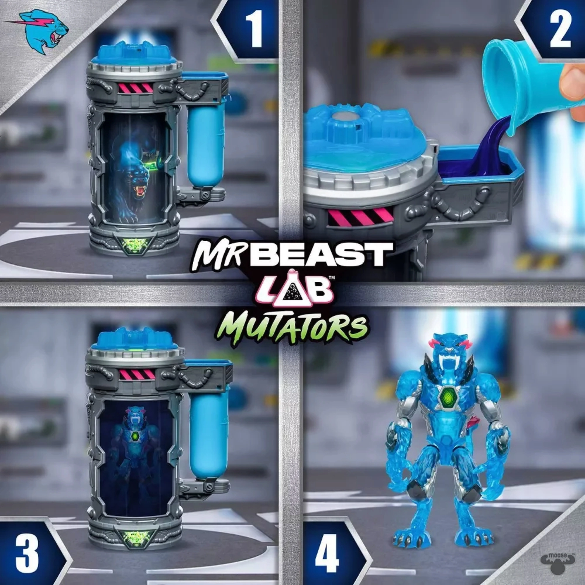 Vivi un emozionante esperimento dal laboratorio di MRBEAST: riempi la provetta, agita e guarda svelarsi davanti ai tuoi occhi la pantera futuristica dall'effetto metallico. La figura sembra un predatore di un mondo meccanico ed è pronta all'azione.