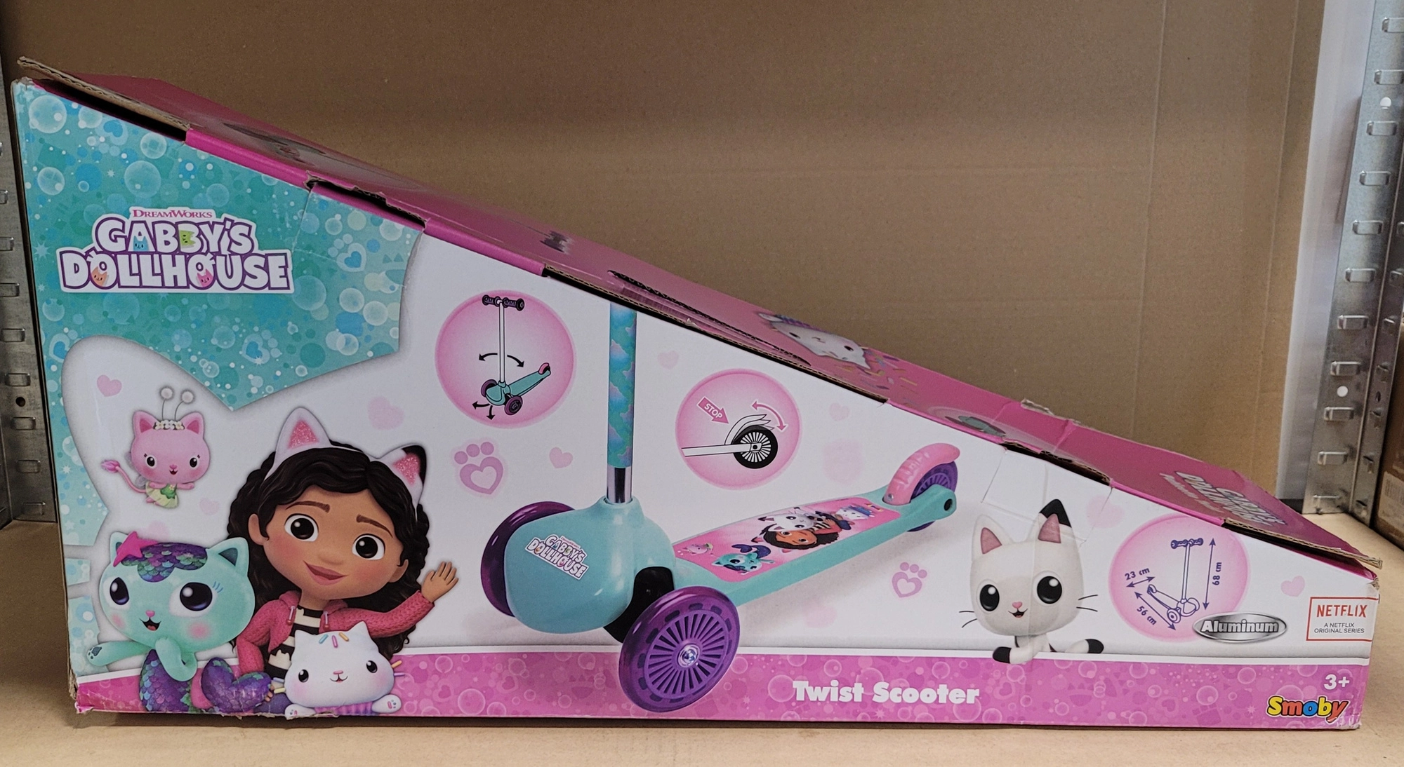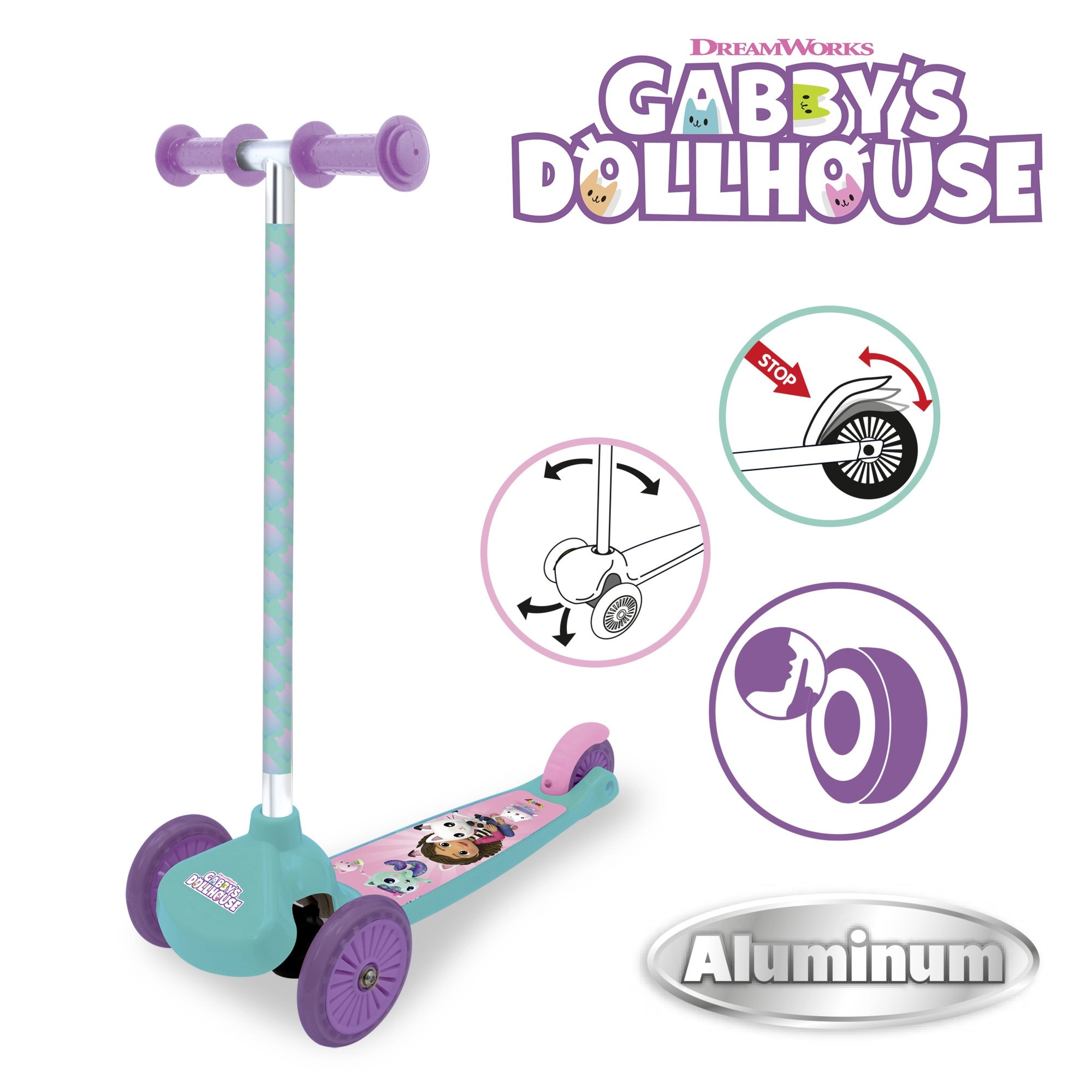 Monopattino per bambini leggero e stabile con motivo GABBY’S DOLLHOUSE per bambini dai 3 anni. Offre tre ruote per sicurezza ed equilibrio, sterzo bilanciato per un controllo semplice, ruote silenziose e freno posteriore a pedale per un arresto sicuro. Ideale per le prime corse e lo sviluppo della motricità. Nota: confezione danneggiata, il prodotto è completamente funzionale.
