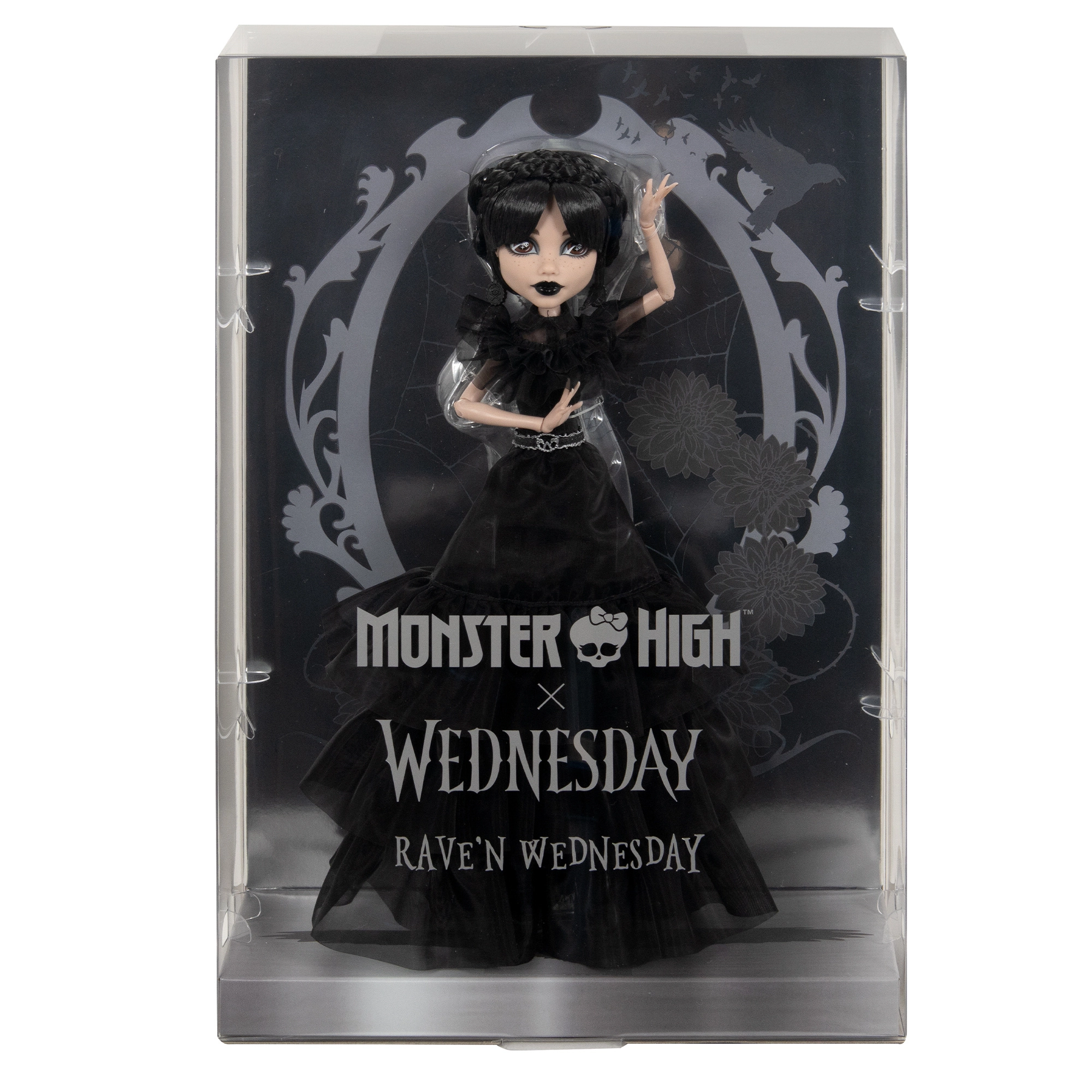 Immergiti nell’eleganza oscura con la collezione Monster High Collector: la bambola WEDNESDAY ADDAMS con l’iconico abito nero in organza a strati. Grazie al corpo snodato, al trucco dettagliato e al supporto per l’esposizione, è ideale per collezionisti e fan della serie. Non mancano cintura argento, gioielli gotici e tacchi alti con elementi cristallini per una presentazione d’effetto.