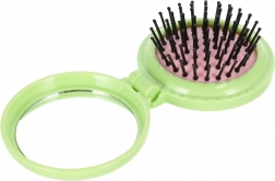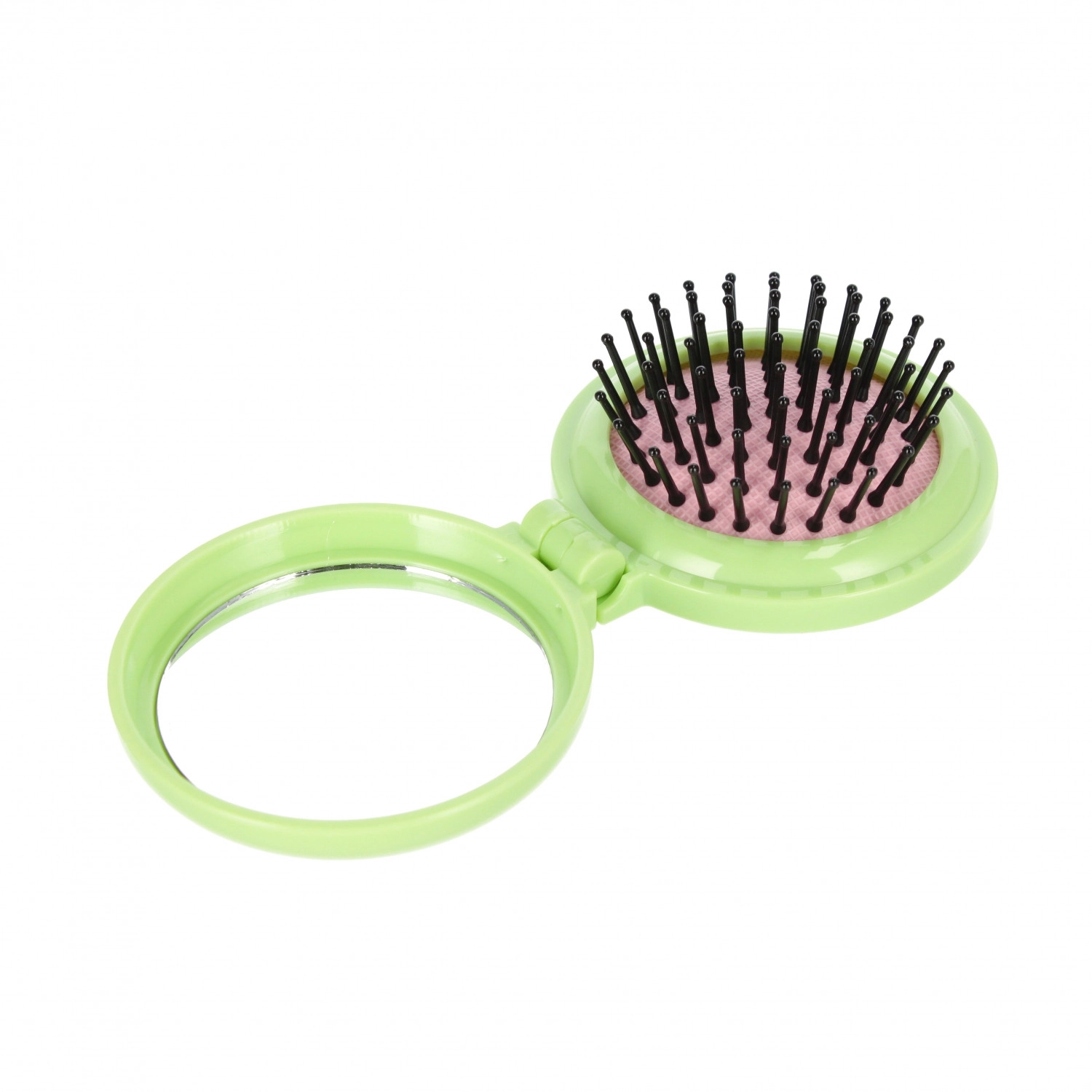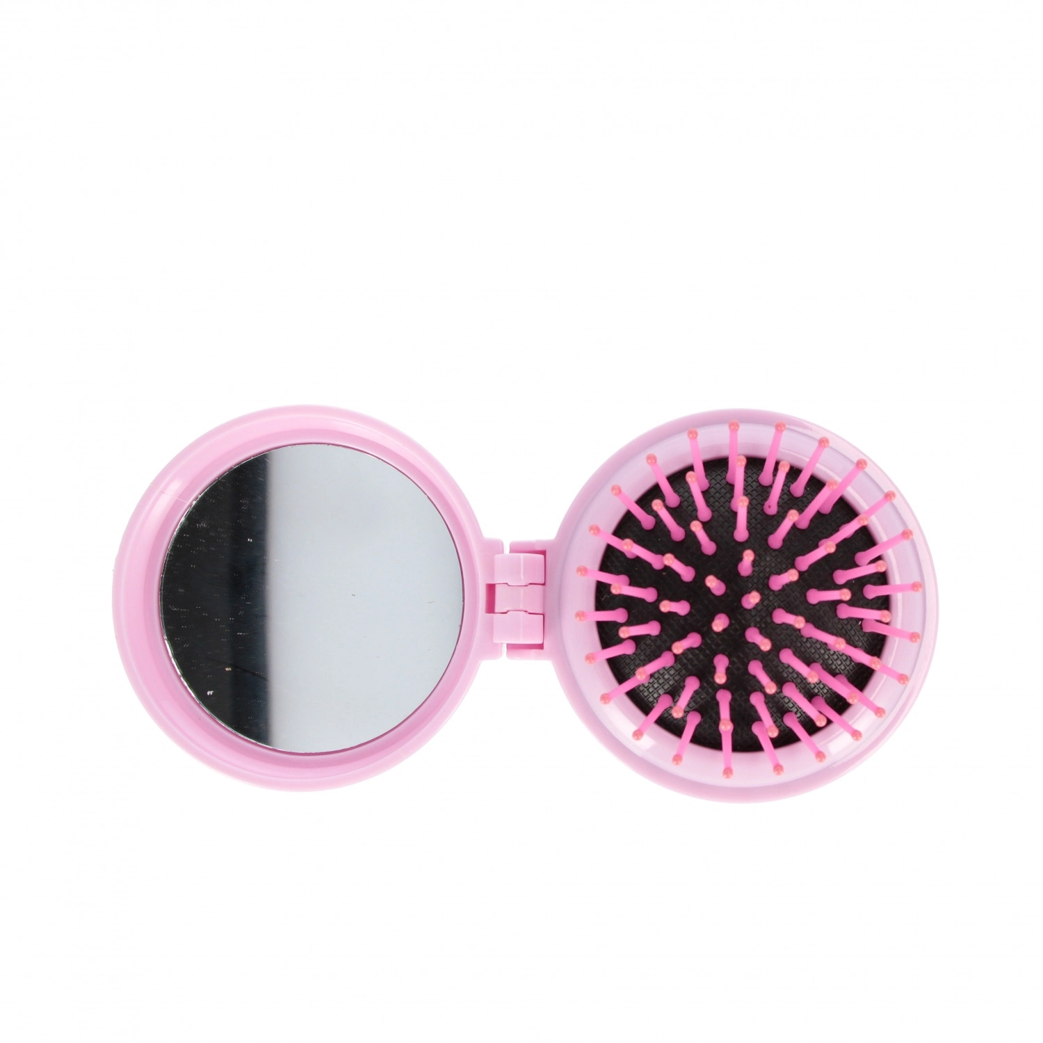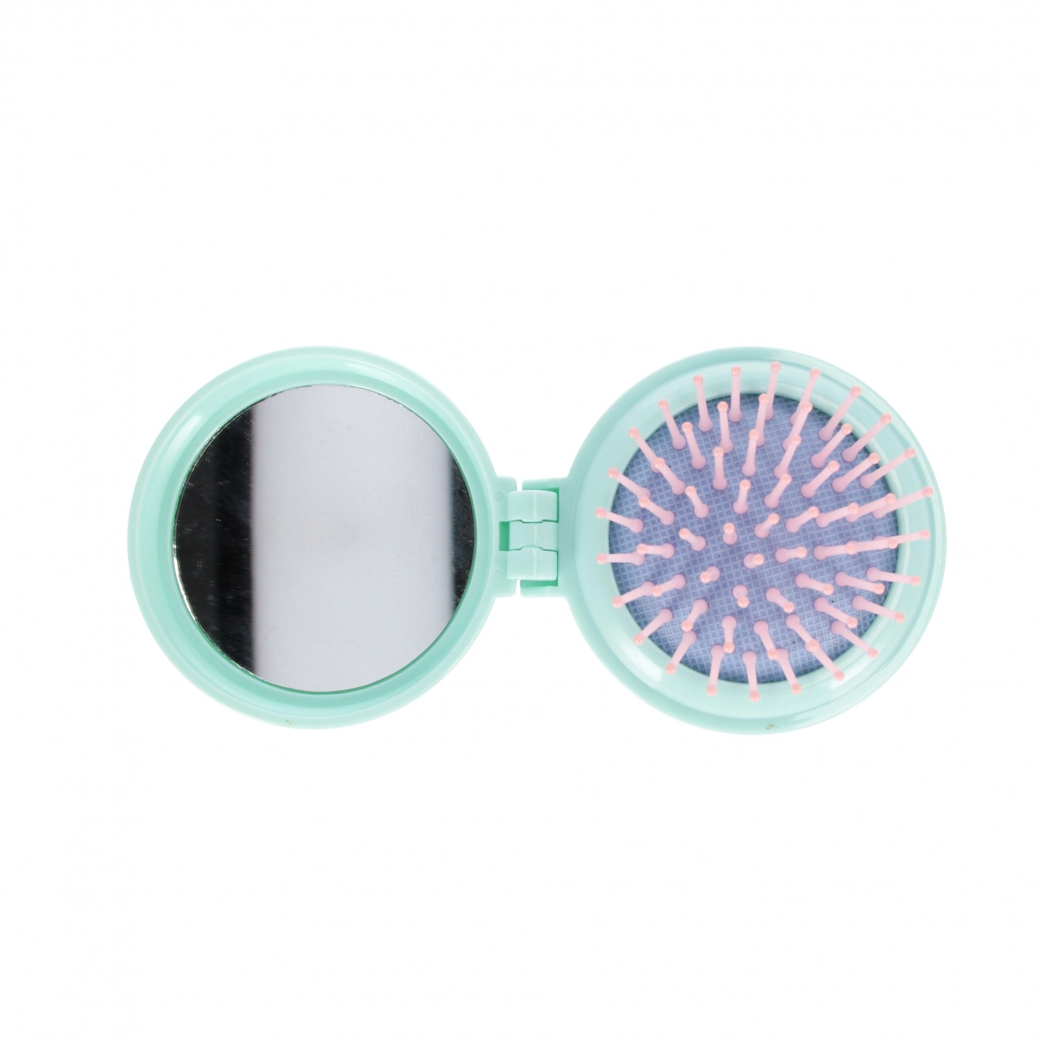 Pratica spazzola pieghevole con specchietto 2 in 1 lunga 8 cm, ideale per borsa, zaino o tasca. Offre design compatto, districatura facile e controllo rapido del look in qualsiasi momento in viaggio. Disponibile in diverse varianti di colore, setole arrotondate e sicure e apertura semplice. Adatta ai bambini dai 3 anni.