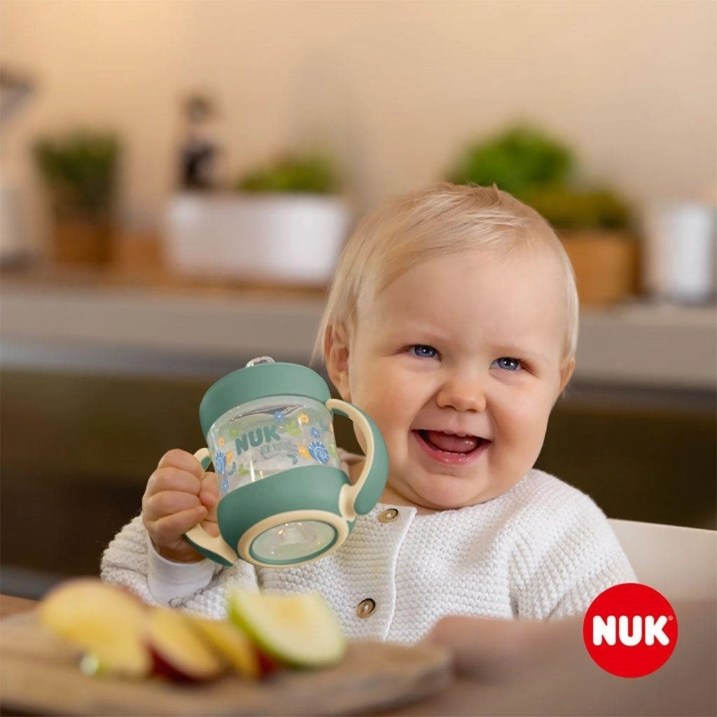 La tazza per l’apprendimento NUK for Nature 150 ml per bambini 6–18 mesi offre controllo della temperatura, beccuccio in silicone antigoccia e valvola anticolica per una bevuta comoda e tranquilla. Grazie a impugnature ergonomiche antiscivolo e al fondo stabile antiscivolo, il bambino la afferra facilmente e la usa in autonomia. Realizzata in polipropilene senza BPA, si smonta e si pulisce con facilità – ideale a casa e in viaggio.