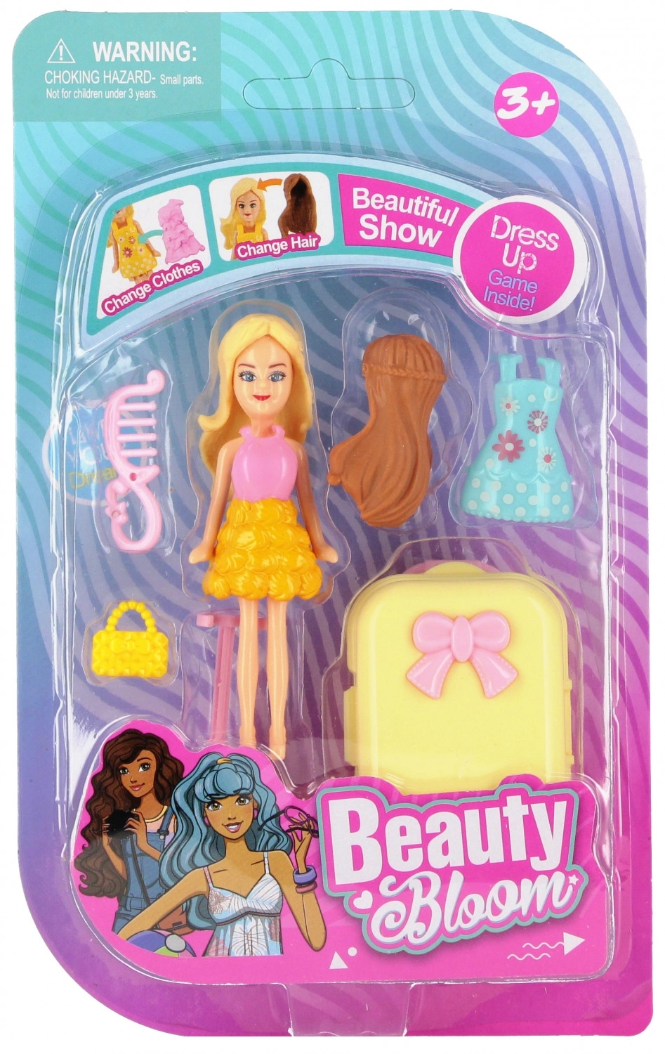 Una dolce bambola con ricchi accessori farà felice ogni bambino. Nel pratico set trovi una valigetta, una borsetta, un pettine e un vestito. Ideale per il gioco creativo e lo sviluppo della fantasia. Varianti diverse, dimensioni compatte 9 cm e sicura per bambini dai 3 anni.
