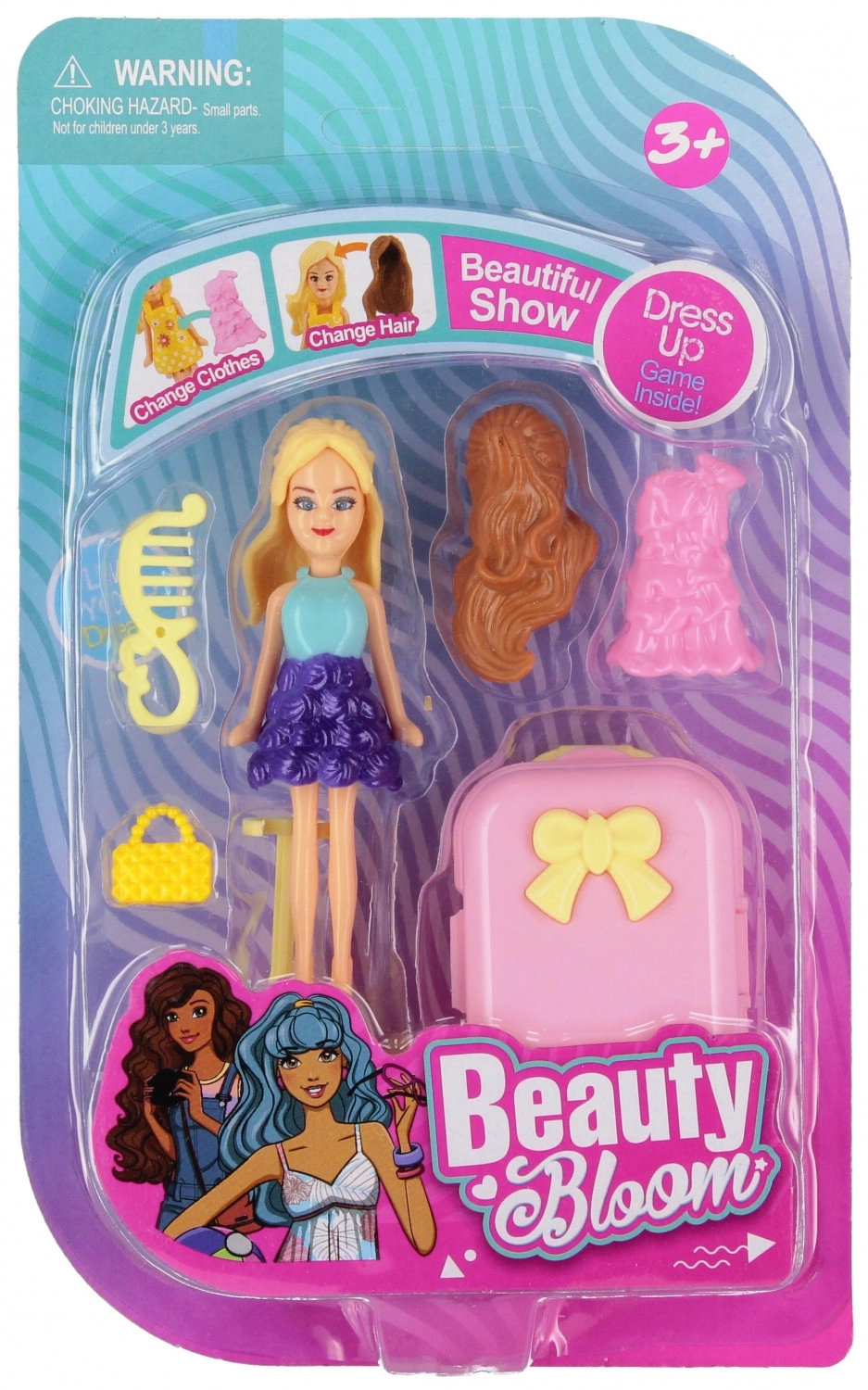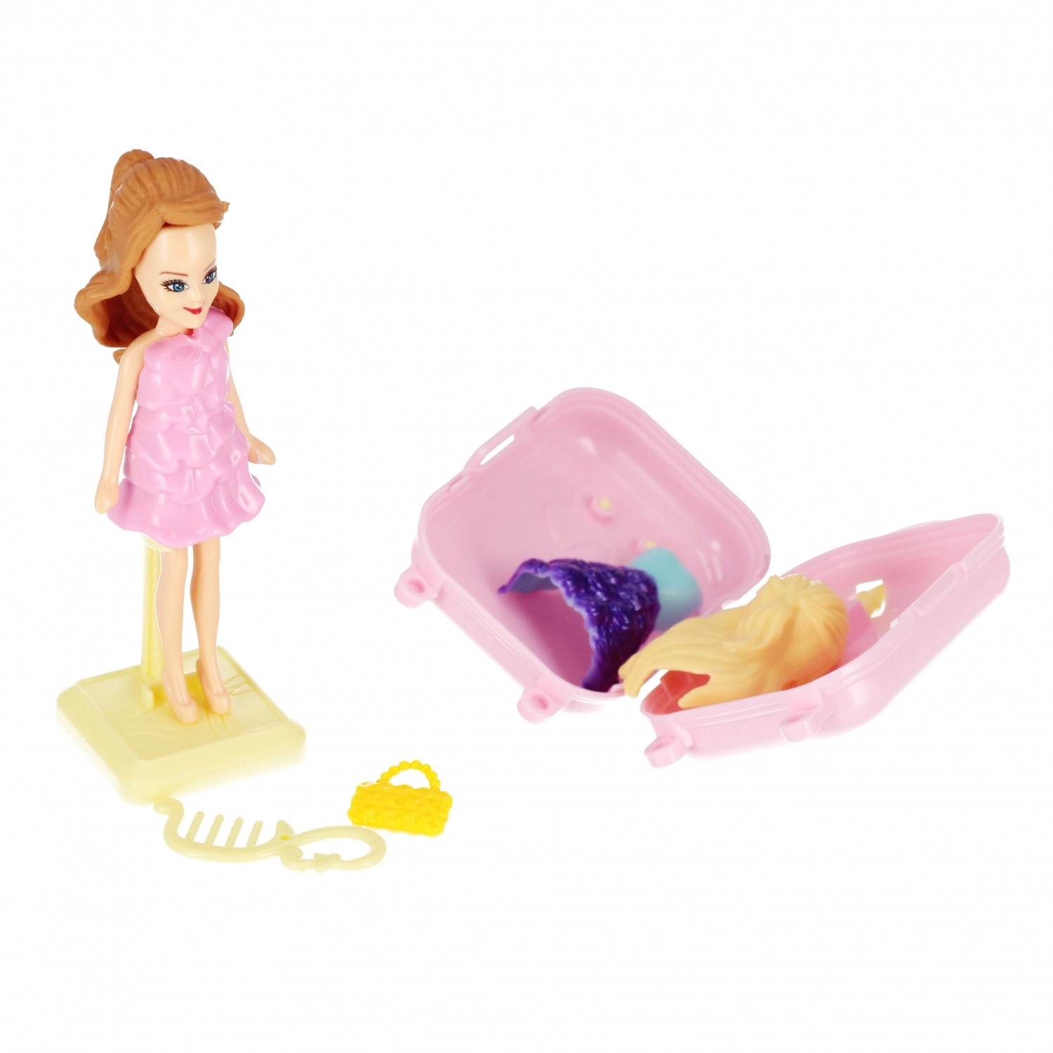 - Bambola, valigetta, borsetta, pettine per capelli, vestito