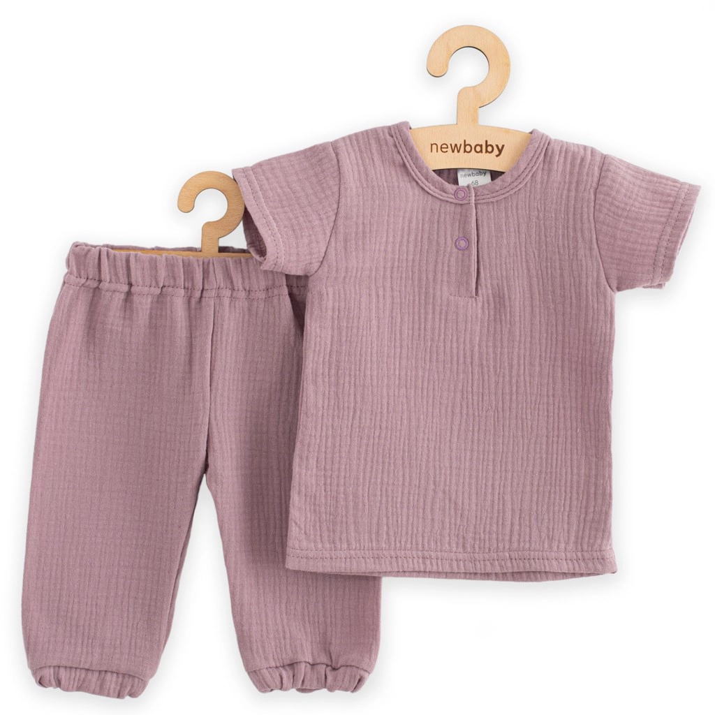 Scopri la leggerezza e il comfort della mussola nel completo per neonato NEW BABY in una delicata tonalità lavanda. Il set è composto da una maglietta a maniche corte e pantaloni confortevoli. La mussola in 100% cotone è morbida, traspirante e delicata sulla pelle sensibile, oltre a essere resistente ai lavaggi frequenti.