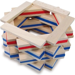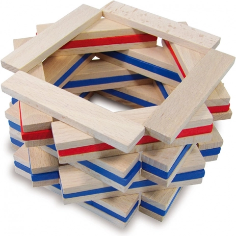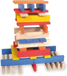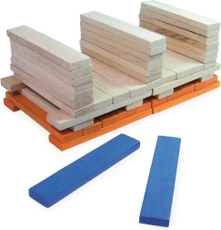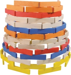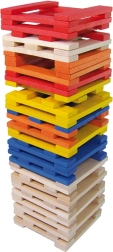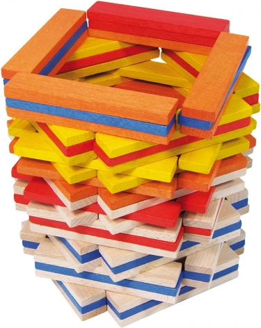 Il set include 100 listelli solidi e lisci in colori naturali e vivaci – ideali per torri, casette e strutture originali.