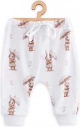 Questi pantaloni jogger in cotone per bambini del marchio New Baby sono progettati per il massimo comfort del neonato. Grazie alla vita elastica si indossano facilmente e non stringono. La stampa all over con dolce motivo per bambini dona ai pantaloni un look giocoso adatto all’uso quotidiano.