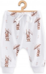 Comodi pantaloni jogger per bambini in morbido 100% cotone del marchio NEW BABY FOR BABIES con tenero motivo bunny. Hanno in vita un ampio elastico, un laccetto decorativo per la regolazione e polsini a costine più larghi al fondo gamba per una tenuta perfetta. La certificazione OEKO-TEX STANDARD 100 garantisce sicurezza per la pelle sensibile dei bambini.