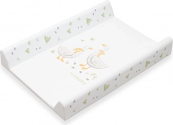 Pratico e sicuro rialzo fasciatoio New Baby con motivo di ochette in colori pastello, offre un cambio comodo e igienico ogni giorno. Ha una superficie impermeabile, sponde laterali sagomate rialzate per maggiore sicurezza e una base inferiore rigida per un fissaggio stabile al lettino o al supporto. Realizzato in pellicola certificata priva di sostanze nocive, delicata sulla pelle del bambino.