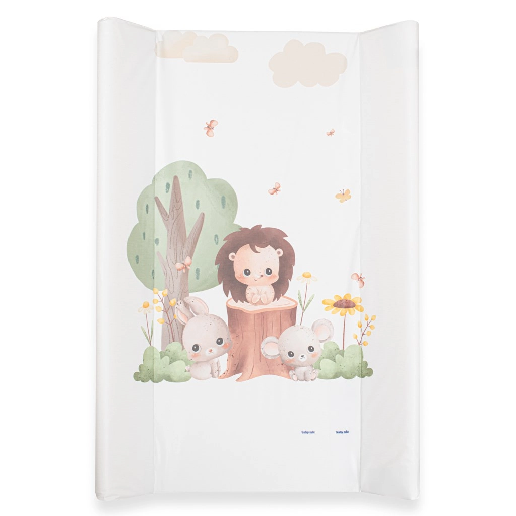 Il pratico fasciatoio BABY MIX con motivo degli animali del bosco offre un ambiente sicuro, igienico e confortevole per la cura quotidiana del tuo bebè. Grazie alla piastra rinforzata e ai perni antiscivolo è stabile e affidabile, mentre la superficie priva di ftalati è delicata sulla pelle del bambino. Il formato compatto 47 × 70 cm si adatta perfettamente alla maggior parte di cassettiere e fasciatoi.