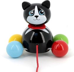 Quando viene trascinata, la coda della gattina Minou si muove allegramente, motivando i bambini a fare altri passetti e sviluppando la loro coordinazione.