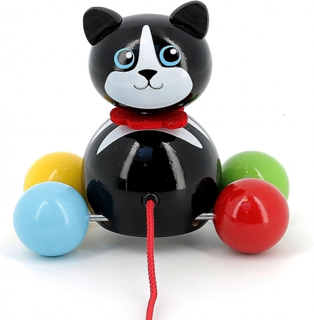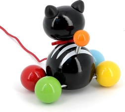 La gattina trainabile Minou è un’ottima compagna per le prime passeggiate in casa. Grazie alle ruote con palline colorate e alla cordicella rossa, i bambini si affezionano facilmente al gioco e sviluppano in modo naturale la motricità grossa, la stabilità e la coordinazione occhio–mano. La struttura leggera e resistente in massello laccato è piacevole al tatto e facile da pulire.