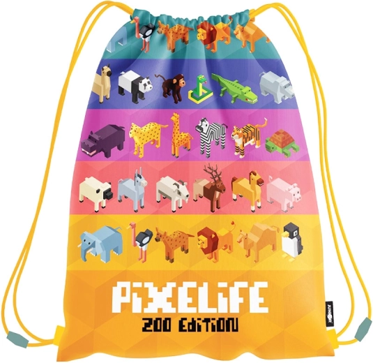 Pratica e leggera sacca con motivo Pixel Zoo, dimensioni 39 × 33 cm, ideale per corsi, asilo o gite. Chiusura facile con cordini, resistente e adatta ai bambini dai 3 anni. Ottima scelta per trasportare pantofole, abbigliamento sportivo o piccoli oggetti in viaggio.