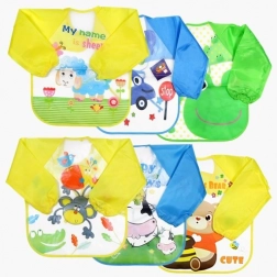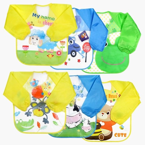 Pratico grembiule per bambini con maniche che protegge i vestiti durante le attività creative, la pittura e i pasti. Offre diversi design giocosi, si indossa facilmente ed è ideale per bambini di 2–4 anni.