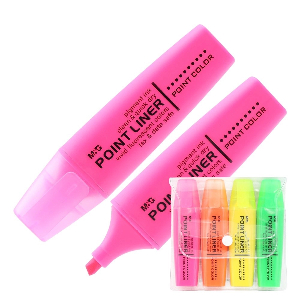 Scopri gli evidenziatori fluorescenti M&G con piacevole profumo in un pratico set da 4 colori. Grazie alla punta a scalpello crei facilmente tratti sottili e spessi, l' non lascia sbavature e la tecnologia anti-essiccazione ne prolunga la durata. Sicuri per documenti stampati nei colori preferiti: rosa, arancione, giallo e verde.