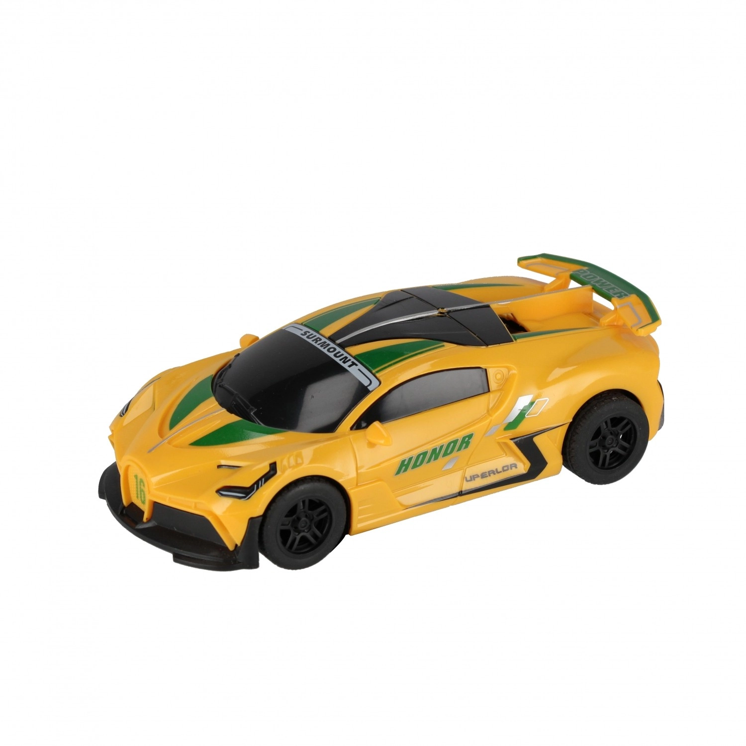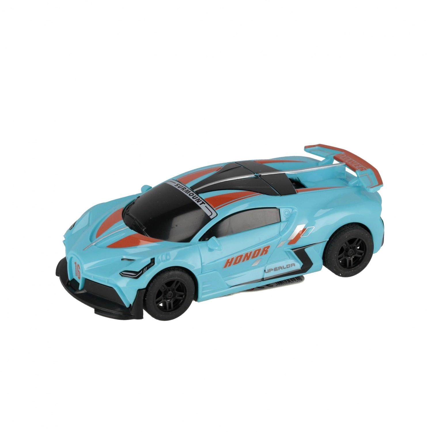 Auto da corsa veloce e divertente con funzione pull-back per una guida dinamica senza batterie. Grazie alla ruota aggiuntiva per drift esegue spettacolari derapate, amplificando l'esperienza di gioco d'azione. Ideale per bambini dai 3 anni, disponibile in tre colori (nero, blu, giallo).