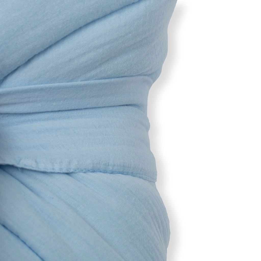La mussola è tra i tessuti più puri e morbidi. La sua struttura leggera permette una circolazione ottimale dell’aria, così il bambino resta al caldo senza surriscaldarsi. La fascia è ideale per sonni tranquilli, allattamento e per il passeggino.