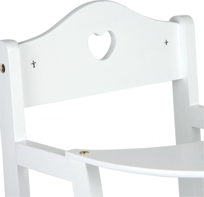 Questa seggiolina per bambole in legno, di un bianco puro, è un complemento d’arredo stiloso per la cameretta come per il soggiorno. Il delicato intaglio a cuore nello schienale aggiunge un tocco grazioso, mentre la struttura robusta assicura un divertimento sicuro e duraturo.