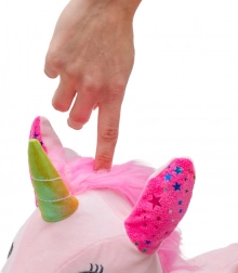 Il dolce unicorno rimbalzante in peluche del marchio Baby Mix offre un divertimento duraturo e sicuro per i bambini. Grazie alla superficie morbida e antiscivolo e alle comode orecchie come maniglie favorisce equilibrio, coordinazione e rafforzamento muscolare. Il modulo sonoro integrato, premendo tra le orecchie, emette suoni realistici di cavallino. In confezione sono inclusi pompetta e batterie (3× LR44).