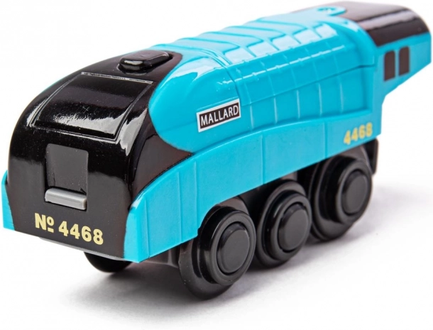 La locomotiva elettrica Mallard si distingue non solo per il suo vivace design blu, ma anche per la capacità di trainare altri vagoni grazie al sistema magnetico. Il controllo semplice con un unico pulsante sul camino ti conquisterà per la sua facilità d’uso. Il trenino è alimentato da 2 batterie AAA, non incluse nella confezione.
