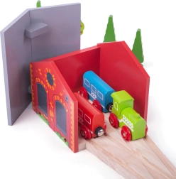 Pratico deposito in legno per due trenini, un accessorio ideale per qualsiasi ferrovia in legno. Il design compatto con binario di ingresso consente di parcheggiare facilmente fino a due convogli, mantenere l’ordine ed espandere le possibilità di gioco. Realizzato in legno di qualità conforme alle norme di sicurezza europee, stimola la fantasia e le abilità dei bambini. Compatibile con la maggior parte delle ferrovie in legno, costruzione resistente e integrazione facile nel plastico.